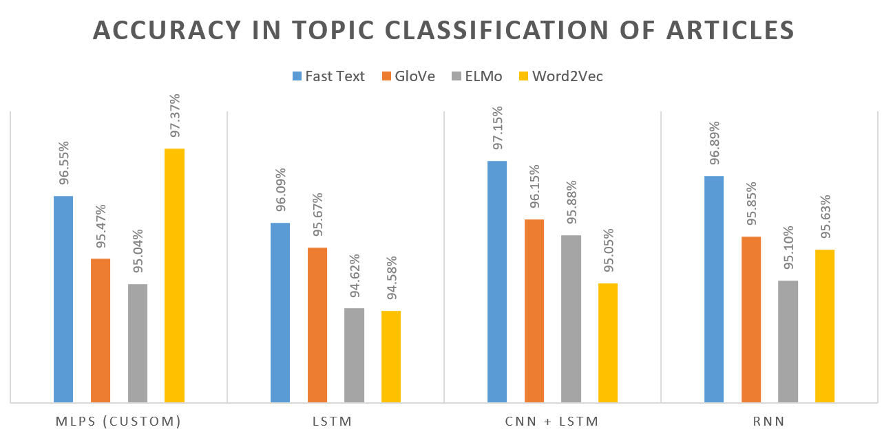 The chart describes in detail the accuracy measured on the test set of the embedding sets on each classification model